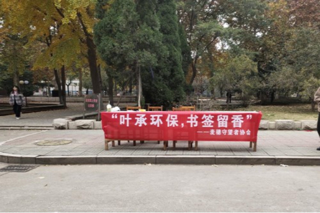 管理学院麦穗守望者协会进行“叶乘环保,书签留香”宣传活动