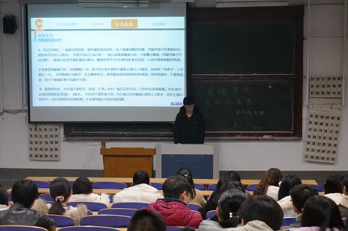 11月28日下午,管理学院于1号教学楼举办“礼仪风采秀”比赛,此次比赛由管理学院学生会助学服务部举办,助学服务部副部长崔俊杰主讲、史长帅主持,部分学生参加。