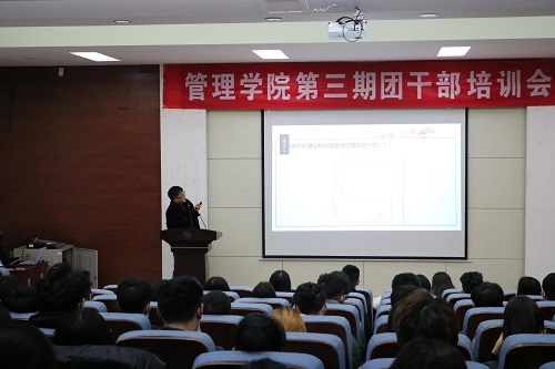 11月26日下午,管理学院第三期团干部培训会于4号教学楼召开。此次会议由学生科辅导员傅豪主讲,2018、2019、2020级团支书、团支部副书记、组织宣传委员参加会议。