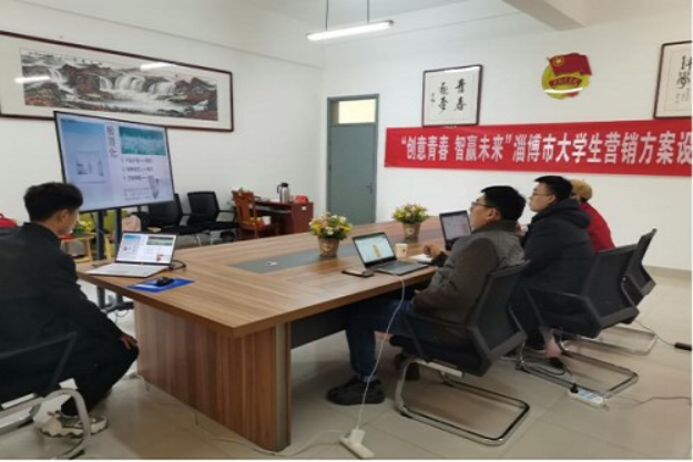 此次决赛以线上形式进行,参赛选手来自淄博市的各个学校。会议开始前,主持人负责维持秩序,督促各组答辩人进入腾讯会议并修改个人名称。会议正式开始,工作人员依次播放各组提前提交的5分钟答辩视频,评委认真观看视频并阅读该组策划书。在每组答辩视频播放结束后,三位评委针对各参赛选手答辩内容进行提问,答辩人员需根据提问内容进行细致介绍。最后,三位评委进行打分。历经三个小时,十八个小组的答辩全部完成。在答辩过程中,各组展现出不同的营销策略,有的选手已经在短视频行业做出一定成绩从而制定出短视频营销策略,有的选手在淄博市有一定的实习经验从而制定出线下营销方案等,不同的营销方案给企带来业更多选择。决赛结束,主持人宣布比赛结束并说明最终成绩将会由评委和企业沟通后进行公布。