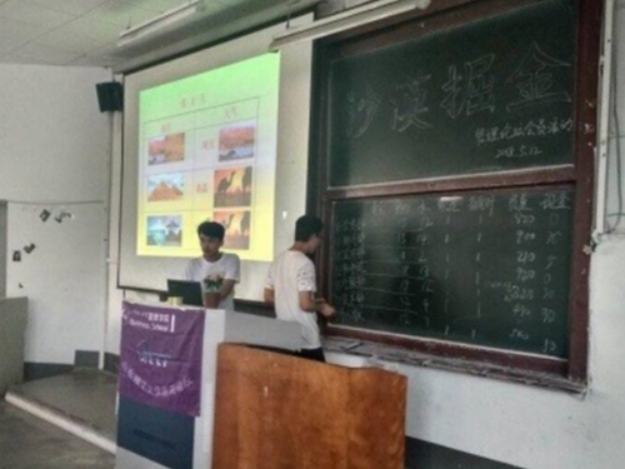 为丰富同学们的课余生活,培养同学们的个人兴趣爱好,使同学们拥有更加多彩的大学生活,管理论坛于12月4日在太阳成集团tyc122cc入口东校区一号教学楼东一合堂举办“沙漠掘金”活动,参加活动人员约50人。