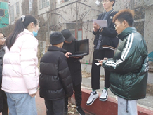 第二环节为“头脑风暴”,参赛队伍在规定时间内进行题目解答,题目内容涉及志愿服务,类别为选择题、判断题和填空题。同学们于体育场原位置集合,迅速进入状态,进行第二环节的答题。第三环节为“反应力大考验”,图片内容有明星、动画片人物、影视剧人物等,计时3分钟。在规定时间内以小组为单位进行答题,小组成员争分夺秒,排队轮流看图,现场的气氛虽紧张但又伴随着欢快。