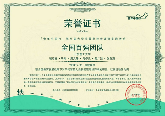 青年中国行第八届大学生暑期社会调研实践活动——管理学院麦穗守望者协会成员荣获“全国百强团队”称号