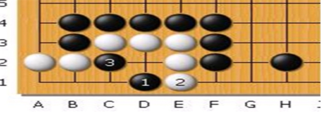 例如老鼠偷油,又称“耗子偷油”,是边角死活的基本形状之一,因棋形像一只小老鼠而得名。 “老鼠偷油”是一种犀利的杀着,即利用对方棋子气紧,深入敌阵,一点一断,造成对方棋子不入,做不出两个眼,成为死棋。如图白棋就是这种棋形,黑棋1点,3点断后,白棋两边不入,整块棋被杀。