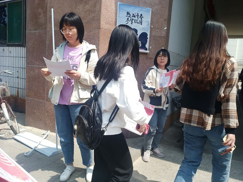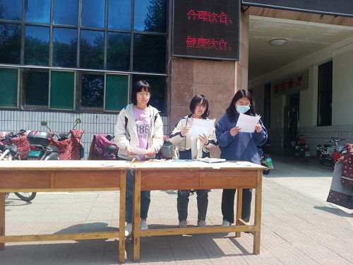 4月21日至22日,金点子调研室于餐厅门口,进行“回望百年历程,品味党史魅力”知识竞赛的活动宣传,此次活动由金点子调研室会长程利利负责,社团各部门分阶段、分时间进行活动宣传,宣传活动期间,新闻部成员对宣传过程进行摄影记录。