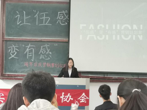 2021年4月24日下午两点,实战营销协会在四号教学楼103教室举办“让伍感变有感”周年庆营销策划公关答辩比赛。此次比赛的目的是丰富同学们的营销知识,帮助同学们更好的运用营销知识。此次活动由实战营销协会副会李家轩组织,实战营销协会新闻部部长欧珈宏主持。