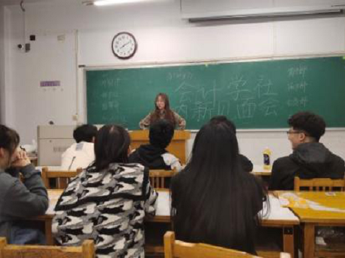 见面会伊始,会长蒋玉金向新成员介绍关于会计学社的历史、活动举办、部门分类等的信息,并耐心解答新成员的疑惑,让新成员对会计学社有初步了解。随后,由副会长轮流向新成员介绍其负责部门的详细信息,同时表示对新成员的欢迎,帮助新成员对之后的部门选择有大致方向。