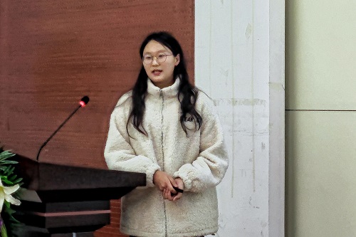 接着,商梦婷与大家分享自己的考研经历。她就考研的目的、注意事项、备考重点以及学习技巧展开交流。她详细讲解学硕与专硕的区别、考研国家线、时间安排及考研目标制定等内容。她以“重坚持,好心态,高效率,好方法”十二个字对学习技巧进行总结,给予现场学生很大启发。