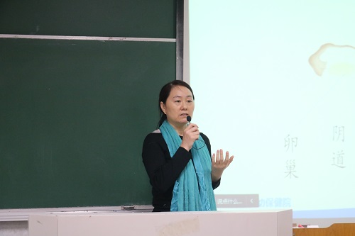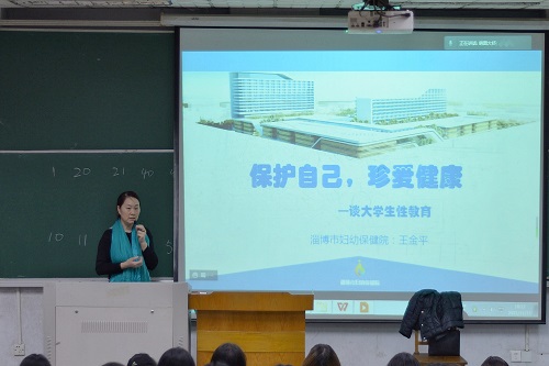 随后,王金平围绕从青春期到性成熟、生殖系统解剖与常见疾病预防、少女妊娠及流产的危害、常见性传播疾病四个方面展开讲解。她详细讲解了青春期的特征,生命的起源,男女生之间的体态差异,并向学生介绍了艾滋病等几种性传播疾病的传播方式和危害,她提醒学生一定要做到早发现,早治疗,提高警惕,不要羞于启齿。