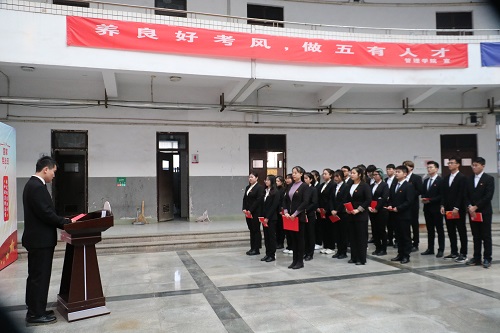 最后,学院党建事务工作负责人张勇带领全体学生骨干郑重宣誓:忠于中华人民共和国宪法,维护宪法权威,履行法定职责,忠于祖国、忠于人民,恪尽职守、廉洁奉公,接受人民监督,为建设富强民主文明和谐美丽的社会主义现代化强国努力奋斗!宣誓完毕后,学生骨干有序在条幅上签名并合影留念,以此做出自己的承诺,在今后积极践行“有法可依,有法必依,执法必严,违法必究”的理念,始终铭记宪法精神。