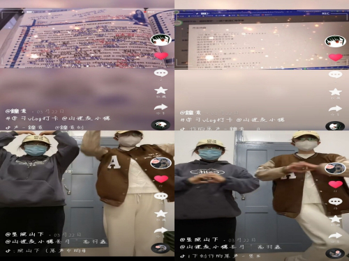 随后同学们也可以将我们封校期间的大学生活以视频的形式记录下来,可以记录我们的学习生活,日常寝室交流,运动日常等等。视频制作完成后可以发送至抖音并@山理麦小穗,或是将视频发给指定的工作人员。
