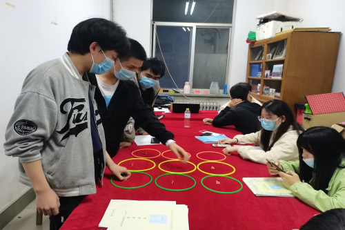 活动准备之初,成员们就如何让活动更具趣味性,怎样提高成员的参与度以及活动中的注意事项等一系列问题进行集中的讨论,同时借助棋盘对实际的情景进行模拟,以便于解决活动中存在的纰漏,制定并完善好活动形式与规则。