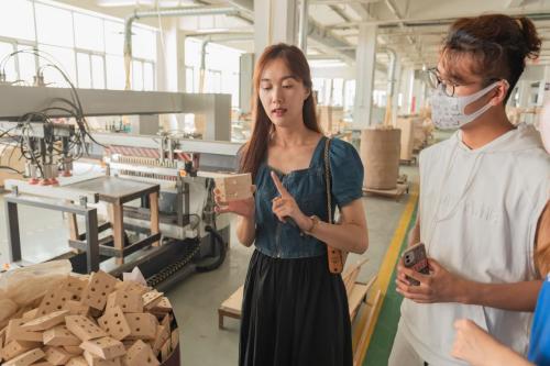 通过睿帆工艺的负责人的介绍,实践团了解到睿帆工艺在产品制作和销售等方面已经形成了一个完整的产业链,线上销售主要是直播带货等销售手段,政府会联系提供相应人才,目前公司有意向去打造一个直播基地来吸引更多人才。