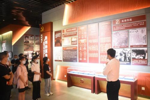 调研团成员在讲解员的带领下,参观纪念馆内陈列的珍贵文献、历史文物、影像照片等,了解抗战时期艰辛历程以及革命先烈不怕牺牲的革命事迹。调研团成员以一幅幅艰苦的画面、一幕幕感人的革命场景,重温那段激情燃烧的红色岁月。