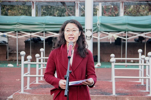 高静静作国旗下讲话,就党的二十大的伟大历史意义进行深入阐释,向同学们传达了学校第四次党代会精神。她对全体学生提出三点希望:一是学习党的二十大精神,做爱国者;二是孜孜以求日学不辍,做勤学者;三是担当奋斗笃行不怠,做奋进者。最后,她结合习近平总书记在二十大报告中对青年提出的殷切期望,勉励全体同学不懈奋斗,以优异成绩创造属于新时代青年的精彩故事。