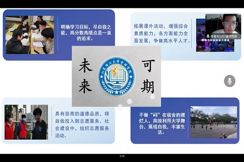 最后,罗亚男对此次答辩中出现的问题进行汇报总结:一要注意班级名称书写的完整性;二是PPT排版时文字图片要分配合理;三是领导人讲话的引用篇幅要合理;四是班徽须用电子版呈现;五是展示的照片要真实具体;六是活动主题要凸显。