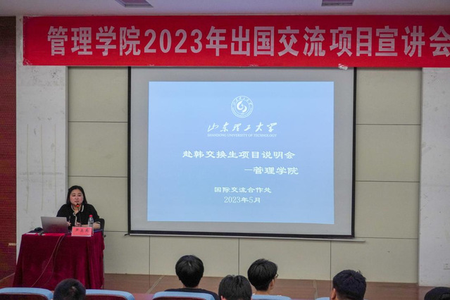 5月18日下午,我院在4教二楼报告厅举办出国交流项目宣讲会。此次宣讲会由国际交流合作处国际交流科科长尹美英主讲,学院部分学生参加。