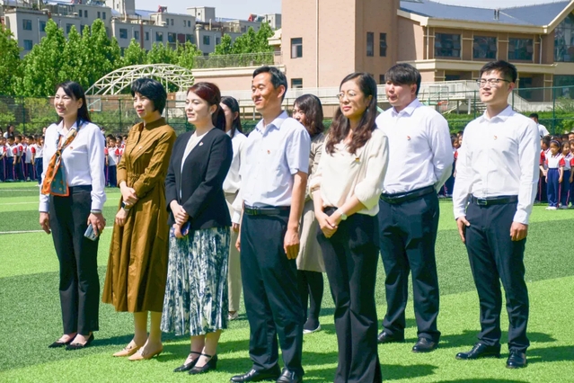 为深入开展学习贯彻习近平新时代中国特色社会主义思想主题教育,发挥学院党组织优势,推动双方党支部共建工作走深走实,5月22日上午,管理学院在淄博市张店区齐润小学承办“大手牵小手,一起跟党走”主题升旗仪式。淄博市张店区齐润小学党支部书记、校长崔守峰,齐润小学副校长赵红霞、张宁,管理学院党委副书记张佳,管理学院团委书记李璐出席仪式,齐润小学全体师生,管理学院工商管理学生党支部书记国瑞坤及党支部全体党员参加此次仪式。