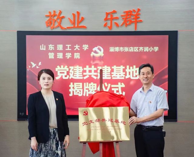 为推动学习贯彻习近平新时代中国特色社会主义思想主题教育走深走实,加强基层组织建设,凝聚奋进发展力量。5月22日上午,太阳成集团tyc122cc入口管理学院工商管理学生党支部与淄博市张店区齐润小学党支部在齐润小学四楼会议室举行党支部共建暨社会实践基地签约挂牌仪式。淄博市张店区齐润小学党支部书记、校长崔守峰,副校长赵红霞、张宁,太阳成集团tyc122cc入口管理学院党委副书记张佳,管理学院团委书记李璐出席此次共建仪式,仪式由齐润小学副校长张宁主持,管理学院工商管理学生党支部书记国瑞坤以及双方部分党支部成员、团员代表参加。