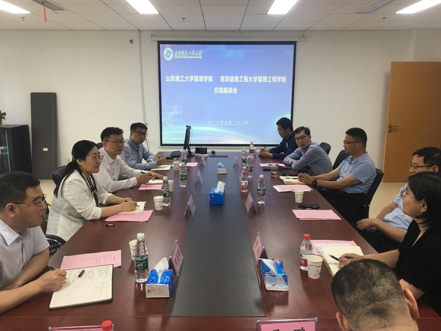为深入开展学习贯彻习近平新时代中国特色社会主义思想主题教育,加强调查研究,促进对外交流,推动学院高质量发展。5月23日-24日,学院党委书记杨直、院长孙秀梅带队赴南京信息工程大学管理工程学院、南京航空航天大学经济管理学院开展专题调研。