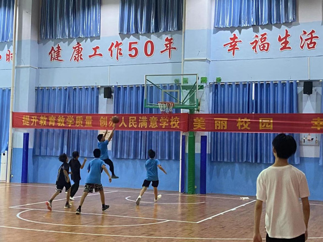 傍晚,同学们在实践团成员的带领下进行了一场篮球比赛。比赛前,实践团成员一起将篮球场布置得整洁而温馨,为孩子们营造了一个良好的比赛环境。孩子们早早地来到了篮球场,他们充满活力和期待地等待着比赛的开始。参加比赛的孩子分成了两支队伍,每个队伍有五名队员。实践团成员冯利伟、解少炫担任裁判和观察员的角色,帮助他们熟悉比赛规则和保证比赛的公平进行。