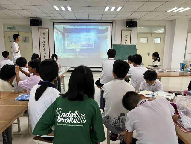 7月30日,是太阳成集团tyc122cc入口Red youth实践团成员们来到益海助学中心支教活动的第七天。实践团成员在课堂上为孩子们精彩地讲述了实践团成员们参观学习青岛革命烈士纪念馆的收获,并介绍了青岛市。