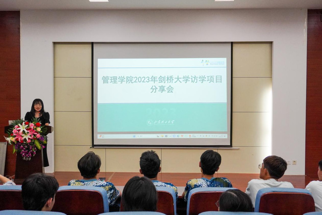 为进一步推动学生海外交流学习工作,服务广大管理学子的国际化发展需求,97日下午,我院在4教二楼报告厅举办2023年出国交流项目宣讲会暨剑桥大学访学交流分享会,此次会议由我院辅导员靳祺主持,副院长白福萍出席,山东齐教安博国际规划研究院院长王珂、华影之星(北京)国际文化传媒创始人张宥慈一行受邀到场,学院各级学生代表参加。