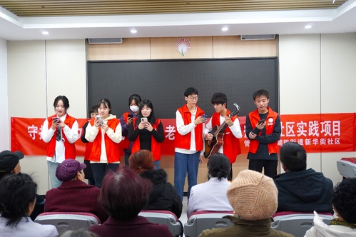 随后,尤克里里社团的志愿者们为老人表演节目,倾情演唱了《日不落》《奢香夫人》等老人们耳熟能详的音乐,老年人们纷纷加入演唱,会场群情欢洽,其乐融融。