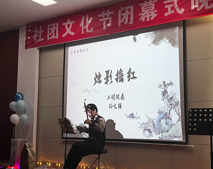 而后,孙文喆同学一曲《烛影摇红》的二胡独奏不禁让人浮想联翩,悠扬独特的二胡乐声深深牵引着我们的心扉,时而高亢激昂,时而温润涓细。