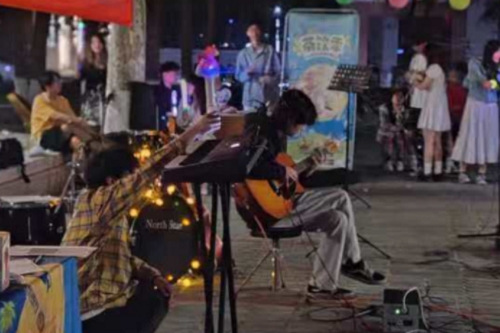 活动伊始,社团成员们早早地来到现场,忙碌地布置舞台、调试音响设备,为即将到来的演出做好充分准备。随着夜幕的降临,活动正式拉开帷幕。开场舞环节,成员们以精彩的舞蹈表演点燃了现场的氛围,让观众们感受到了尤克里里音乐的魅力,也成功地带动起了观众们。
