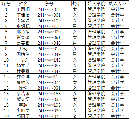 通过转入名单如下,请与3月4日-3月5日上午11点前到管理学院4号教学楼215进行签字确认,不确认签字按放弃转入处理: