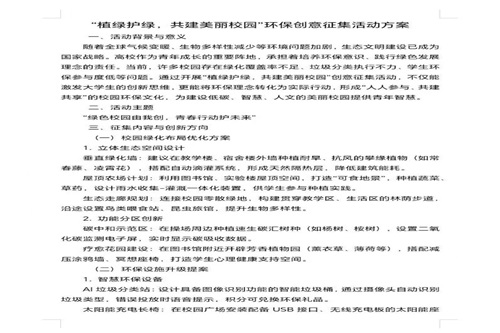 此次绿色校园创意征集活动充分体现出同学们的创作智慧和创意热情,从构思巧妙的绿化布局,到脑洞大开的环保设施构想,这些金点子将成为打造绿色校园的宝贵财富,相信同学们的行动会让校园的天更蓝、水更清、树更绿。未来,希望大家将环保理念融入进生活点滴,让绿色成为校园底色,让校园的每一寸土地都洋溢着蓬勃生机,打造出校园绿色发展典范,在鸟语花香中孕育更加美好的未来!