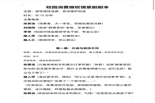 此次活动同学们以组队的形式参加,通过角色扮演,引用法律知识,运用镜头语言呈现消费者维权议题。在活动结束后,金点子调研室社团对提交的每一份作品都进行了严格的审查,杜绝弄虚作假行为,同时对积极参与本次活动的同学给予了一等奖0.64二课分;二等奖0.48二课分;三等奖0.32二课分的奖励。