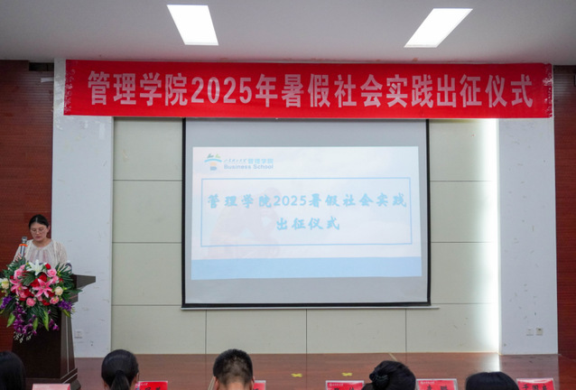 为深入学习习近平总书记关于青年的重要论述,引导青年学生在实践中受教育、长才干、作贡献。77日下午,我院于东校区4号教学楼二楼报告厅举行2025年暑期社会实践出征仪式。管理学院党委副书记张佳,团委书记李璐,思政课实践教学指导组教师胡付领、牛凤燕、于国良,辅导员索罗丹、马传金、任前树、高琦及暑期社会实践学生代表参与仪式,仪式由辅导员曹立茹主持。