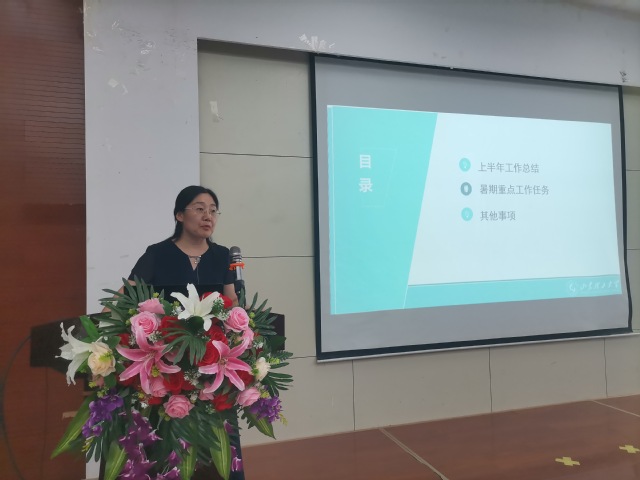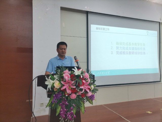 党委副书记张佳,副院长胡付领、白福萍、宋剑锋结合各自工作分工,分别就学生管理、本科教育教学、科学研究、学科建设、研究生教育、社会服务、国际交流合作等具体工作进行了情况汇报和详细安排。同时作为纪委书记,张佳结合科研经费规范使用等暑期工作重点监督事项,面向全院教师开展清廉课堂,进行专题警示教育。