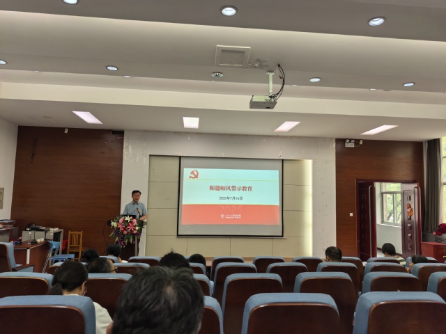 党委书记杨直传达了学校2025年暑期工作部署会精神,对学院上半年教师思想政治和师德师风建设进行了总结部署,并结合典型案例,开展了师德师风警示教育。对深入贯彻中央八项规定精神学习教育以来的工作和2025年上半年全面从严治党党风廉政建设工作进行了总结,对暑期工作提出要求。杨直强调,一是落实好校党委关于暑期工作的有关要求,不折不扣落实好深入贯彻中央八项规定精神学习教育各项任务。二是坚守初心使命,强化育人担当,严守《新时代高校教师职业行为十项准则》,争做“四有好老师”,当好“四个引路人”。三是落实暑期安全责任制,加强留校学生教育管理,确保学院师生安全。
