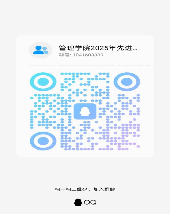 4.请各班负责人、班级推选出的优秀学生、优秀学生干部以及申请先进班集体的班级负责人加入管理学院2025年先进集体、优秀个人评选群(QQ群号:1041603339)。
